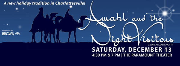 On December 13th of last year, Ash Lawn Opera brought Amahl and the Night Visitors to the Paramount Theater for the third year in a row. Families from all around came to share in this touching tale of struggle and forgiveness. Juanita is the choreographer for this heartwarming story about a crippled boy and his encounter with the Wise Men as they follow the star on their journey to seek the newborn king. The performance was in English and was about an hour in length. We are honored, as this was a great opportunity for our dancers to work with the professional singers and actors from around the country at the beautiful Paramount Theater. For more information about the Paramount Theater, visit http://www.theparamount.net/ For Ash Lawn Opera, see http://www.ashlawnopera.com/amahl/
